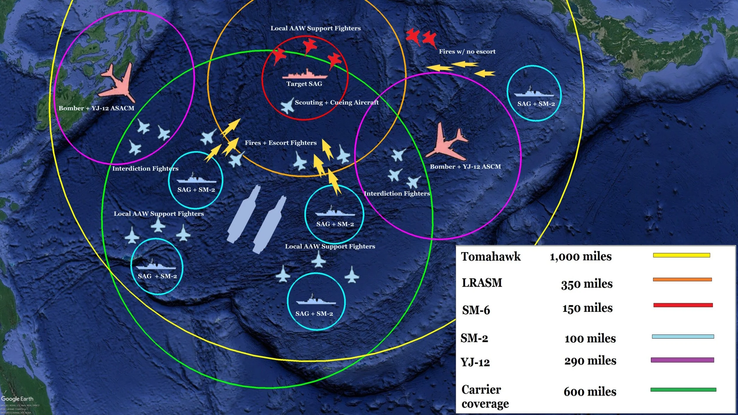The ASBM force is an additional layer that might very well be used to strike a carrier group as part of a synchronized attack involving submarines, long-range bombers and dozens of ASBM, in an attempt to saturate the fleet defenses hoping for multiple hits by any of these munitions.