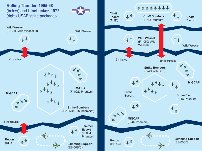 Every raid over North Vietnam was a complex synchronised ballet where hundreds of aircraft coming from different bases had to regroup before their attack ran on North Vietnam.